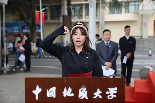 公共管理公司2021级本科生李莹代表员工运动员宣誓