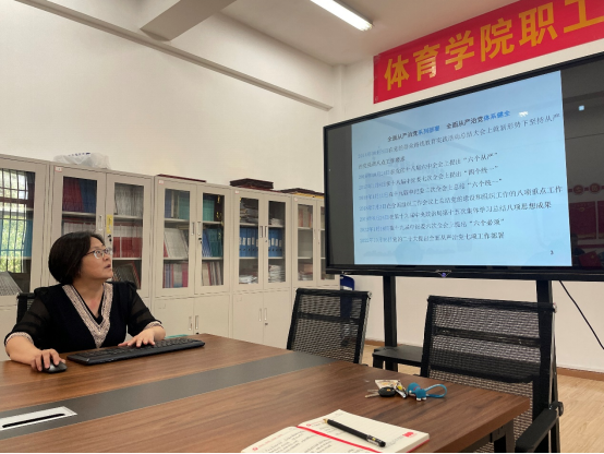 庞岚书记领学了党的二十大报告,她领学的题目是《坚定不移全面从严治党,深入推进新时代党的建设新的伟大工程》,她从七个方面讲述了这一主题:坚持和加强党中央集中统一领导;坚持不懈用新时代中国特色社会主义思想凝心铸魂;完善党的自我革命制度规范体系;建设堪当民族复兴重任的高素质干部队伍;增强党组织政治功能和组织功能;坚持以严的基调强化正风肃纪;坚决打赢反腐败斗争攻坚战持久战。她说,全面加强党的领导,明确中国特色社会主义最本质的特征是中国共产党领导,中国特色社会主义制度的最大优势是中国共产党领导,中国共产党是最高政治领导力量,坚持党中央集中统一领导是最高政治原则。