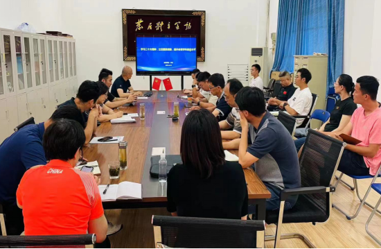 2023年6月15日下午 体育公司党委在西区体育馆党员之家举行公司党委理论学习中心组专题读书班专题学习。 李元经理领学, 公司党委委员、支部书记以及三级机构负责人参加了此次学习活动。